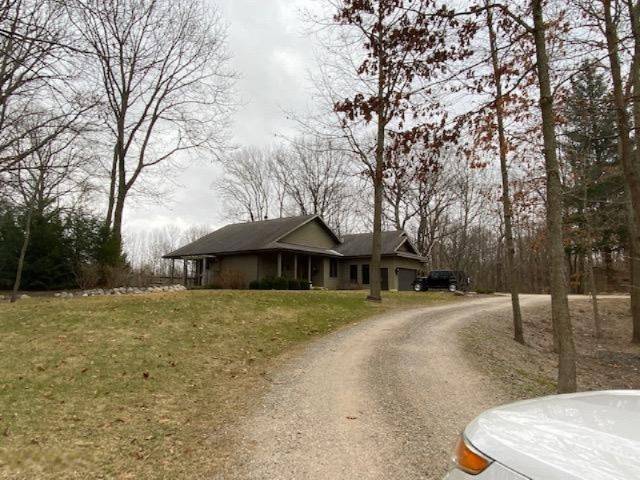 This immaculately kept home features a quiet wooded setting just outside of town with all city utilities. Located on a private lane, it overlooks a deep ravine and neighboring pond in the back. It features a 3-car heated garage with cabinets, 3-4 BR's, open floor plan, LR with cathedral ceiling and wood burning fireplace (with gas line), maple and granite kitchen with kitchenaid appliances, double wall oven, gas cook top, and large Island with seating and prep sink. Large main level master suite and laundry room. Fully finished walk-out basement is great for entertaining with it's open family room, large bar/kitchenette, den, and full bathroom. Other features include a covered porch, central vacuum system, and underground sprinkling system.